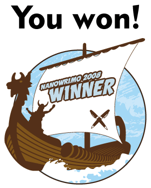 Ten years of Help Desk work paid off! I was able to find a temporary file from fifteen minutes earlier that was only missing a few hundred words. To be honest, I felt a little bit on tilt but I kept on writing. With an hour and five minutes left before midnight I crossed the finish line with over 50,000 words and all my plot lines tied up.Â
